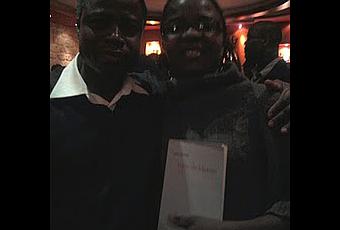Sami Tchak acceptant, à ses risques et périls, de se laisser encadrer par Liss et Marthe Fare. Si, à l'avenir, vous trouvez que son talent s'est amoindri, ne cherchez pas loin, il aura été l'objet d'une transmission mystique.Soirée Sympa. Elle s'est prolongée par un dîner, mais moi, il fallait que je file, mes poussins attendaient à quelques mètres. Oui, je sais, je suis une mauvaise mère, les traîner ainsi jusqu'à Paris ! J'entends encore leurs protestations. "Mais, maman, on n'a même pas fait les devoirs !" "Eh bien, on va les faire dans la voiture, ou bien vous les ferez demain matin à la garderie. Allez, en route, on va à Paris ! Faut que j'arrive avant 21h, moi !" Déclaration faite sous le regard réprobateur... mais collaborateur du papa.