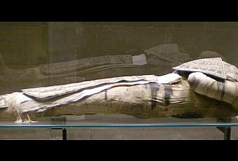 Précisément dans une vitrine voisine de la célèbre momie qui, comme dans tous les
