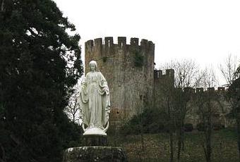 …ou l'archétype du château fort des contes de fées et autres dessins-animés. Du moins, dans mes souvenirs d'enfant, il me semble que le château fort des princesses, je l'imaginais tel que celui-ci, avec ses deux tours crénelées, larges et massives. Quand j'ai vu ce château pour la première fois, c'était tout à fait inattendu, et je ne pensais absolument pas voir un tel édifice planté là, dans la toute petite commune de Loubersan. J'étais en sortie improvisée avec une amie. Il pleuvait mais on avait quand même envie de se promener. J'étais à la place passager dans la voiture et alors nous repartions pour chez moi, j'ai tourné la tête aux abords du village et j'ai aperçu la statue de la vierge et derrière elle, l'une des grosses tours circulaires du château. Nous aurions pu nous arrêter plus longtemps, mais nous étions épuisées et la pluie commençait à trop tomber…