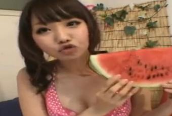 La goulue japonaise en bikini, et sa grosse pastèque