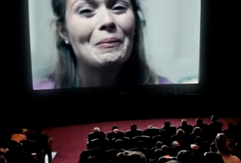 Ca se passe dans une salle de cinéma. Une vraie. Avec le public et tout. On y diffuse un spot publicitaire sur des pop corn. Pendant la pub, une jeune fille commence à étouffer après avoir avalé de travers un pop corn bien croustillant. Elle suffoque, commence à perdre connaissance, … Horreur. Les petites sœurs pleurent, la maman hurle, le père ne sait quoi faire. La mère se tourne alors vers la salle du cinéma, de son public et réclame de l’aide ? « Y a-t-il quelqu’un qui peut nous aider » crie-t-elle, en larmes? Et là, miracle … Mais je vous laisse découvrir le dénouement.