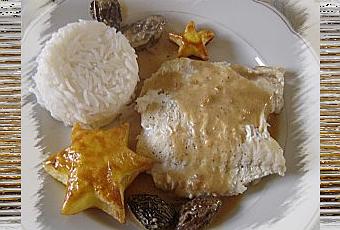 Dresser les assiettes avec une étoile de pâte feuilletée, un filet de poisson, de la sauce et des morilles.