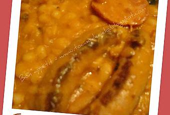 Añadir el salchichon cortado en rodajas. Guisar hasta que las alubias sean muy tiernas.
