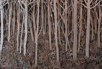 Connaissez-vous l’univers végétal subtilement dentelé d’Eva Jospin ? L’artiste française, née en 1975, fille de… , présente son travail jusqu’au 20 février à l’Espace Electra, à Paris. Et il vaut le détour. La jeune femme participe, avec 17 autres artistes, à « Réhab, l’art de re-faire », qui met en évidence le potentiel esthétique du recyclage dans une très belle scénographie signée de l’excellent Emmanuel Lagarrigue, connu pour ses installations sonores. Rassurez-vous, il ne s’agit pas ici de la nième expo sur la récup’, mais d’une mise en perspective au second degré de l’art de donner une nouvelle vie aux choses. Eva Jospin y propose « Détails de forêt », bas relief en carton d’emballage invitant le visiteur à se perdre dans ses interstices. Le carton est un matériau difficile à travailler. Seuls des designers comme l’Américain Frank O. Gehry avec sa chaise « Wiggle Side Chair » en carton ondulé, chants en panneaux de fibre dure. Le visiteur de « Rehab » est accueilli par un palmier miniature fait de vieux pneus du Britannique Douglas White. Plus loin, la sculpture en lampes de bureau du Britannique Michael Samuels, ou encore la vidéo de l’architecte américain Gordon Matta-Clark, parti filmer l’une des plus grandes décharges des Etats-Unis.