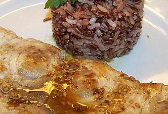 Disposer l'Espadon dans les assiettes, rectifier l'assaisonnement. Vous pouvez également rajouter un filet d'huile d'argan. Servit ici avec un mélange de riz rouge et de riz basmati.