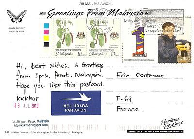 Ce concept "1Malaysia" a également été décliné auparavant sous d'autres formes comme par exemple sur la carte postale ci-dessus (merci à nouveau Kkkhor !).La flamme postale, émise le 9 juillet 2010 à Ipoh, reprend en effet le logo et le slogan de "1Malaysia".