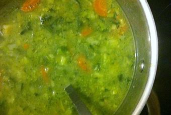 C'est ma soupe du moment, pleine de saveurs et de vitamines ! Un bon mélange de légumes légèrement mixés dans un délicieux bouillon... C'est vraiment top !