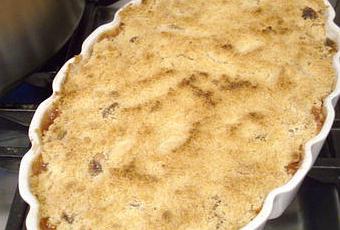 Ici, un grand plat pour dix personnes, bien rempli car la préparation ne gonfle pas, elle a plutôt tendance à s'effondrer...