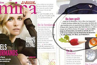 Mon collier radis-beurre dans la presse ce week-end, pour illustrer la vente qui a lieu jusqu'à Noël à l'atelier Isapocket, à Paris.