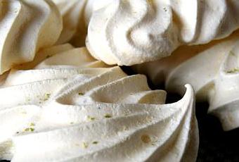 Sprinkle meringues with some lime zests and bake them for three hours (two hours for the small ones). Leave them an additional hour in the switched off oven. Touch them, they should be tough to the touch.