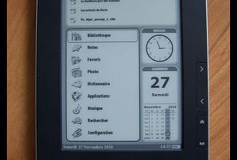 Coté connectique, bouton marche arrêt en haut; en pied reset, prise pour un casque, voyant lulmineux quand il travaille, prise usb, encoche pour carte miicroSD et haut-parleur. Allumage, mode veille, on retrouve très rapidement la dernière page affichée. En quelques minutes, on a compris la navigation, le bouton en bas type joystick très complet et les touches sur le côté très pratiques, une vraie alternative au tactile, pourquoi du tactile d'ailleurs, c'est ce qu'on finit par se dire après quelques heures dessus. Côté navigation, on retrouve les très bonnes idées que j'avais relevé sur le petit 360, les familiers de la marque seront en terrain connu, les autres s'y feront très vite. Dossiers, sous dossiers, vous organisez votre bibliothèque comme vous le souhaitez. Les temps de latence sont bons. Autre chose aussi, tous les boutons peuvent être paramétrés à votre convenance au niveau des fonctions. Vous personnaliserez votre lecteur comme vous le souhaitez. Affichage liste et icône, la fonction icône ne fonctionne pas, une première mise à jour dans la prochaine version du firmware à prévoir. Il est d'ailleurs en pleine évolution en ce moment, la version française étant finalisée depuis quelques semaines seulement. Le PocketBook 602 fonctionne sous Linux. A l'intérieur pleins de choses en plus, des jeux, un text to speech déjà épatant dans sa premiere version. Une voix féminine vous lis vos textes dans un français de bonne facture. Le son est très bon, on peut d'ailleurs charger des fichiers MP3. Côté logiciel de lecture, Adobe Digital Reader bien sûr mais aussi l'excellent FBReader que je privilégie maintenant quand on a des livres sans DRM. La mise en page est très bonne, on peut choisir la taille des marges, les caractères, les césures. Suppression du flash de rafraichissement de pages également ou modération toutes les dix pages, c'est le mode que j'ai choisi. Côté gestion de PDF, rien que du très classique mais efficace, pleine page, zoom que l'on choisit et mode reflowable comme sur le Sony, rien à redire de ce côté-là. La mémoire de 2G et la présence de la carte couvrira toutes vos envies bibliophagiques.