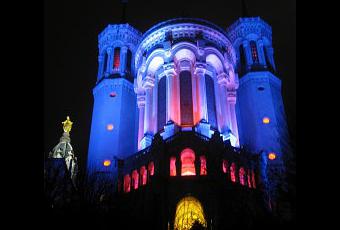 La basilique Notre Dame de Fourvière illuminée à l'occasion de la Fête des Lumières