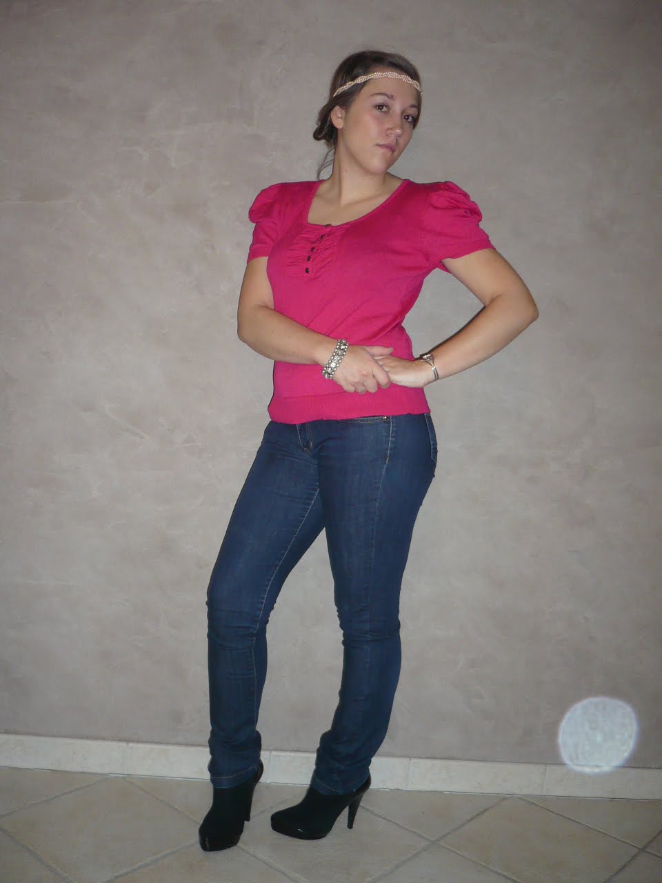 Pull sans manches Naf-NafJean MangoBoots AsosBracelet Jimmy Choo pour H&MHeadband Asos