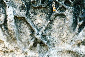Le cimetière de Pons (Charente-Maritime) renferme la tombe d'un gendarme nommé François LE BASTARD, d'où se détache une épée sculptée. La croix qui surmonte le monument est ornée d'un écu en calcaire assez dégradé, datant du XIXe siècle. Le monogramme JS figure en chef. Malgré l'usure de la roche, on y distingue encore des épis de blé sur les côtés et deux instruments en sautoir, dont une pelle de boulanger, à gauche. Mais quel est l'autre instrument, à droite ? S'agit-il d'une pelle munie de trous, ou d'un gril ? Quelqu'un connaît-il le nom et la fonction de cet instrument ? Et pourquoi ce "blason" corporatif se trouve-t-il sur la tombe d'un gendarme ?