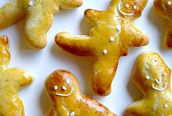 Les Manneles sont des brioches en forme de Bonhommes (et chez moi, bonne femmes aussi) confectionnés en Alsace pour la Saint Nicolas, le 6 décembre. Généralement, je façonne mes brioches à la main ici ou encore là, mais pour mes premiers manneles, j'ai choisi la facilité: des emportes-pièces pour découper la pâte. La recette de ces brioches vient du blog Cakes in the city. On peut les garder nature ou comme ici les décorer: avec du glaçage ( un mélange de sucre et de blanc d'oeuf battu).