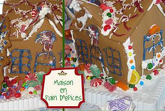 Voici notre maison en pain d'épices... Mais attention, n'y mettez-pas la dent, nous l'avons terminée avec de la colle! En fait, nous avions acheté le kit l'an dernier puis, il fut oublié au fond de l'armoire. Cette fois-ci, pas question de passer à côté, ce fut donc notre premier projet!