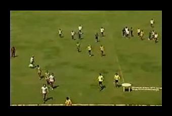 Un arbitre pète les plombs et frappe un joueur s’en suit une course poursuite avec les joueurs.