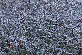 —> Illustration : le cerisier du jardin de mon voisin, un tout petit peu après 8 h ce matin.