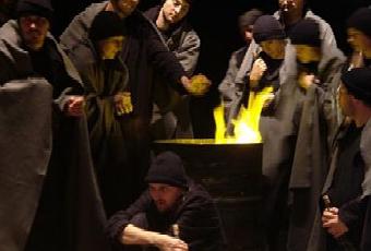 Ils sont descendus du nord de la Roumanie vers la Transylvanie, le temps d’une représentation, avant de rejoindre un mariage ou un baptême, dans un village qui les a invités. Ils habillent le Mythe d’une lueur étrange et dérisoire. Mais ils insufflent la fête dans la douleur et le désespoir. Ils forment ainsi un personnage à six têtes qui renaît dans les remugles des sans domicile fixe. Ils banalisent le meurtre en le poussant de son piédestal. Ils nous en redonnent la dimension quotidienne.