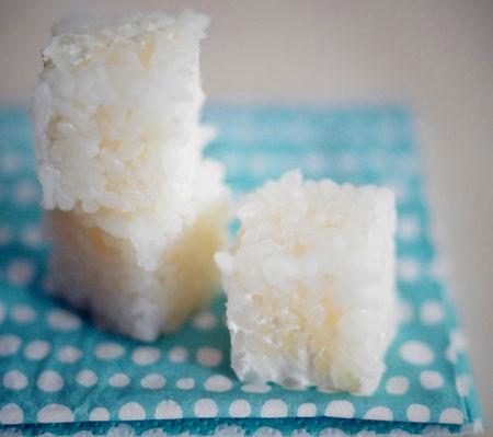 Placer un peu de riz au fond du moule, préalablement enduit d'un peu d'eau,