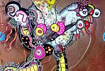 La nouvelle exposition de l’hôtel Bel Ami se veut singulière, entre le graff, la BD, l’art singulier et l’art contemporain. Ilan Weinmann, l’artiste qui expose jusqu’au 21 décembre inclus, est un autodidacte, fan de peintres tels que Picasso, Egon Schiele, Chagall ou Basquiat. Dans ses toiles, il porte un œil averti sur notre futur : « Je m’adresse aux générations futures comme le disait si bien James Ensor ; j’apporte une extrapolation de ce qui se passe aujourd’hui » aime-t-il à préciser. Son étape préférée dans la création ? L’interprétation. « Quand on est enfant, on voit des formes dans les nuages et on les interprète ». Tel un grand enfant, Ilan Weinmann laisse donc son imagination prendre vie, pour qu’elle devienne comme une évidence.