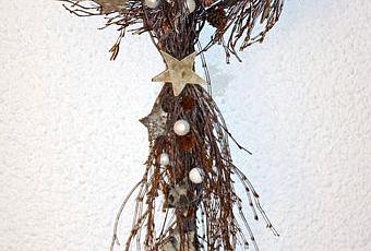 Des branches de bouleau, des petites pives, quelques étoiles et petites boules blanches, elle est simple mais je l'aime bien !
