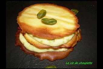 Pour la mousse de pistaches : 75g de pistaches mondées non salées - 33cl de lait - 3 jaunes d'oeufs + 1 blanc - 75g de sucre - 35g de farine -