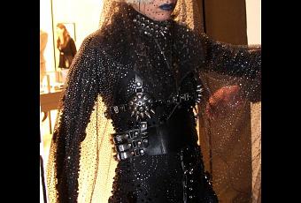Elle est évidemment bien plus distinguée pendant son shopping à Milan dans une combinaison bondage noire, juste avant d'arriver sur le sol français...