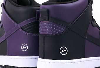 Présentées il y a quelques semaines (voir ici), on découvre aujourd’hui les premières images d’une version Purple/Black des Dunk Hi dépareillées réalisées par Fragment Design. La paire verra le jour le 18 décembre prochain en exclusivité à Pékin.