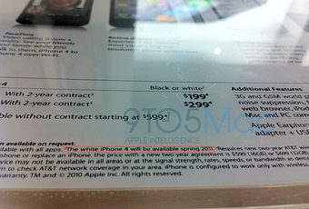 Sur cette photo prise dans un Apple Store, nous pouvons voir cette phrase : « l’iPhone 4 blanc sera disponible au printemps 2011″.