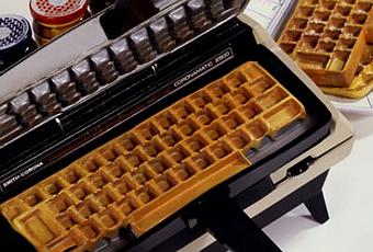 Vous avez tous connu ces moments d’énervement où l’ordinateur se plante, où votre fichue machine ne répond plus aux injonctions de votre clavier. Je ne sais pas pour vous, mais en pareille situation j’ai envie de mordre mon clavier. C’est peut-être en pensant à ces moments pénibles que l’artiste Chris Dimino a eu l’idée de concevoir ce gaufrier très spécial, qui produit des gaufres en forme de clavier. L’idée de départ est de partir d’une machine à écrire vintage – une vieille Smith-Corona Coronamatic- pour la transformer en un gaufrier QWERTY. La « machine à gaufres QWERTY » possède toutes les caractéristiques d’un véritable gaufrier, vous pouvez ainsi préparer des gaufres en une minute environ, suivant de degré de cuisson voulu. Idéal (si vous êtes vraiment accroc) pour compléter le set de tasses Ctrl + Alt + Del, le tabouret Command ou encore la lampe LED Ctrl.