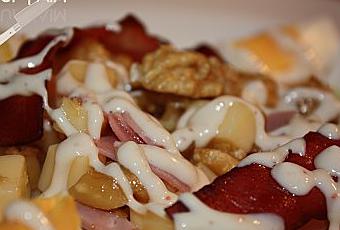 Note : Il me restait du jambon, je l'ai ajouté à la préparation fromage noix, mais c'est facultatif !