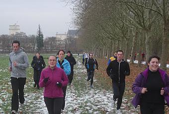 Retour au château de Vincennes pour les étirements et la photo finale... torse nu dans la neige !!! Concours photo oblige...
