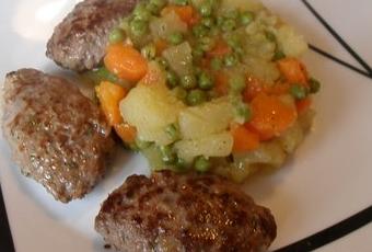 Des petits burgers mijotés dans de l'huile d'olive accompagnés de leur trio de légumes; un vrai délice