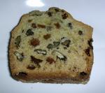 Ce cake était moins gras que son prédécesseur et le croquant des noix se marrie très bien aux raisins secs.