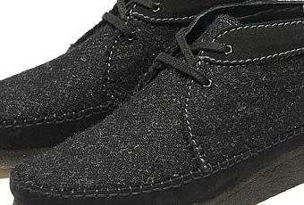 La boutique Atmos collabore avec Clarks pour réaliser une version exclusive de la Weaver Boot qui combine suède noir, Harris Tweed et cuir. Sortie prévue ce mois-ci au Japon.