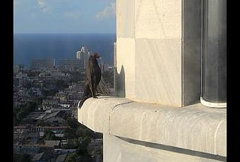 Bon, ce ne sont pas les colombes sur les épaules de Fidel, mais j'aime bien ce cliché où j'ai tenté de prendre le vol du vautour et l'ai capté par hasard au moment où il passe devant le memorial du Che.