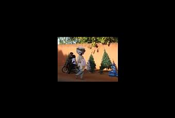 Certes, avec actuellement 40° de plus au thermomètre qu'en Europe, difficile de faire pousser ici des mélèzes... Ceci étant dit, en cette saison on peut trouver à de nombreux coins de rue de Ouagadougou de "jolis" sapins de Noël en plastique.