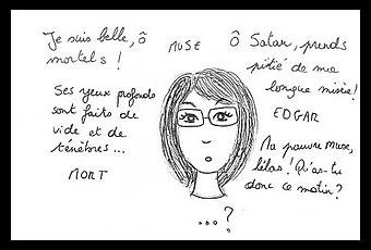 Les critiques théâtrales, c’est bien. Mais une pièce de théâtre ne reste jamais longuement à l’affiche et puis, après, à moins d’un succès écrasant et d’un passage sur les planches des théâtres les plus côtés, c’est difficile de garder une trace visuelle de la prestation et de l’implication des braves acteurs passionnés (et parfois passionnants mais, ça, c’est une notion plutôt subjective, n’est-ce pas ?). Bref. Vous avez droit, aujourd’hui à mon avis et, à moins d’avoir été voir ladite pièce, vous devrez me croire sur parole (Mouahahah ! Désolée, c’est mon côté dogmatique qui se réve(il)le).So. What’s the point ? Petit théâtre pittoresque, salle minuscule, attente[1] d’un savant mélange entre Baudelaire et Tim Burton et présentation (échange de trois personnages – Edgar Allan Poe, sa muse[2] et la Mort[3] – récitant divers poèmes baudelairiens) ont précédé le visionnage de cette pièce d’une petite heure.Verdict ? Musique choisie avec soin (essentiellement du classique), texte envoûtant (ben oui, Baudelaire, ce n’est pas n’importe quoi), décor et déguisement de style Burtonien mais… (Y’a toujours un mais !), histoire (s’il y en avait une) difficilement appréhendable, lenteur qui donne un côté (trop) décousu et aucune clarification sur la signification et le choix des poèmes.Il y a une grande différence entre le théâtre qui est une projection imaginaire du monde réel et la déclamation de textes poétiques sur fond théâtral. Non seulement, les apports émotionnels, psychologiques, cérébraux (oui, oui, le théâtre ça peut induire de profondes réflexions !) et autres sont à cent lieux de la pièce de théâtre plus, « basique » (dirons-nous) mais le mélange de deux grands genres tels que poésie et théâtre est toujours très risqué. Fortes têtes, si on n’y prend pas garde, l’un risque de prendre le pas sur l’autre et de rendre le mélange très indigeste. Conclusion : si je n’ai pas rendu mes tripes sur le siège de devant, l’absorption ne fut pas pour autant des plus délectables.