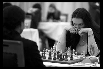 Matchs retour du 3e tour du Championnat du Monde féminin d'échecs. Ci-contre, l'Américaine Anna Zatonskih (2478) défiant du regard l'Indienne Humpy Koneru, meilleur Elo avec 2600 points.