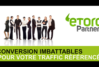 Le programme affilié eToro Partners est votre moyen d’obtenir une part de l’explosion du marché des devises étrangères. Depuis l’effondrement des marchés de capitaux et des marchés financiers dans le monde entier, le marché FX est devenu le seul marché international à continuer de présenter de belles opportunités de trading. EToro est la plateforme de trading de devises numéro un dans le monde, en particulier parce qu’elle offre une manière facile et conviviale de commencer le trading des devises internationales et des matières premières telles que l’or, l’argent et le pétrole. Avec le programme eToro Partners vous pouvez profiter des taux de conversion inégalés d’eToro en utilisant nos outils de pointe de marketing et d’analyse. Nous encourageons tous les webmasters à nous contacter pour des programmes affiliés sur mesure !