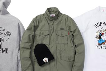 Supreme collabore cet hiver avec Popeye! La collection capsule née de cette rencontre se compose d’une veste M-65, d’un hoodie, d’un tee-shirt et d’un bonnet. Sortie prévue à partir du 16 décembre dans les boutiques de la marque new-yorkaise.