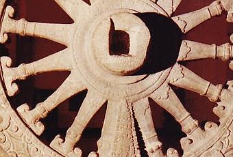 Dans le bouddhisme, la roue de la loi contient les grandes lois de la nature et l'enseignement du Bouddha, lui-même contenu dans les huit chemins du noble sentier octuple. Lorsqu'il est « celui qui fait tourner la roue », le Bouddha est appelé Chakravartin, la roue en sanskrit se disant chakra.