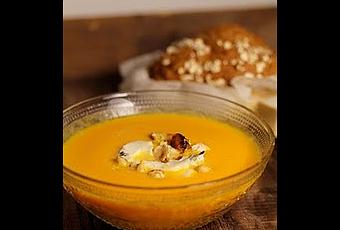 pour 4 personnes :1 potimarron2 carottes 1 cuil à soupe d’huile d’olive1/2 oignonthymbouillon de légumescrème fraichenoisettes /gorgonzola