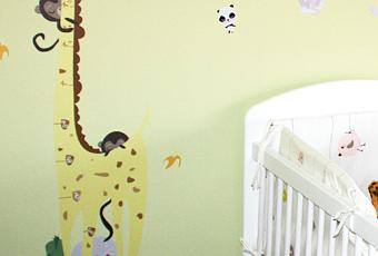 Déco réalisée avec : une mini toise adhésive Jungle et un sticker frise Jungle qu'Agnès a dispatché partout dans la chambre, les murs et le mobilier.
