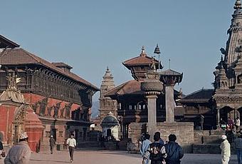 Aujourd'hui, c'est le temple Nyatapola de Bhaktapur qui vient s’ajouter à ma série de dessins que les enfants continuent de venir commenter.