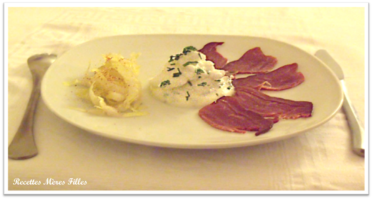 - 5 à 7 tranches de magret de canard séché (ou fumé)
