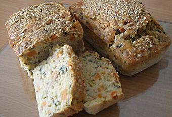 Il y a plus qu’à bien beurrer et fariner votre moule versez l’appareil et parsemez de graines de sésame et au four 35 minute environ à 180°C.