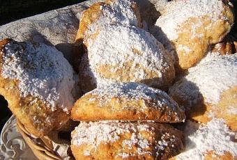 Scones aux pommesPetits gâteaux légers et moelleux Recette pour : 4 pers Préparation : 15 mn Cuisson : 15 à 20 mn à 230 ° Il faut :2 pommes 225 g de farine à levure incorporée 5 g de levure fraîche le zeste râpé d' 1/2 orange 70 g de beurre 50 g de sucre en poudre 1 oeuf + 1 jaune 2 à 3 càs de lait sucre glace pour décorer sel Préparation :Peler et évider les pommes puis les râper Dans une jatte mettre la farine , la levure , le zeste de l'orange et le sel Ajouter le beurre coupé en petits morceaux puis mélanger du bout des doigts , ajouter le sucre en poudre puis les pommes râpées , mélanger du bout des doigts , ajouter l'oeuf battu à la fourchette avec un peu de lait pour obtenir une pâte souple " mais sans excès " Diviser cette pâte en 12 portions égales et les poser sur une plaque de cuisson beurée " ou chemisée d'une feuille de cuisson " Battre le jaune d'oeuf avec un peu d'eau puis en dorer les scones Enfourner four préchauffé à 230 ° pour une cuisson de 15 à 20 mn Saupoudrer les scones de sucre glace