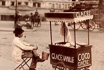 travers les cafés, estaminets, commerces, maisons bourgeoises et les parcs populaires où la glace se consomme. L'invention des glacières naturelles ou ménagères, l'ouverture d'usines de